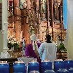 During the Mass, Kulick blessed the inside of the church — the walls, windows, altars and parishioners — with holy water, and gave Holy Communion to the hundreds who attended.