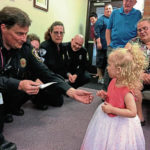 While Isabella handed out pins and police Chief William Vakulick passed out plaques, the responders also had something for Isabella — two Build-A-Bears, one a police officer, the other a firefighter.