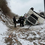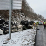It was the second truck to lose control on Route 28 Thursday. Shortly after 11 a.m., a truck carrying scrap metal flipped onto its side on the northbound Exit 14 ramp to Tarentum. Crews still were cleaning up that wreck when the second crash happened.
