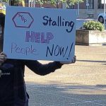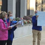 About 20 people attended the morning rally and called for commissioners to quickly craft for a plan to pay for additional services to address hunger, housing, mental health needs and other social programs in high demand because of the pandemic.