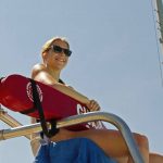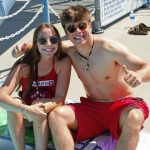 With the temperature already zooming into the high 80s on the morning of the holiday, a fairly long line of swimmers formed in anticipation of being able to enter. Once inside, they were reassured by a full complemented of lifeguards stationed in strategic positions in case of emergency.