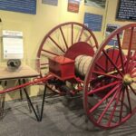 The firefighting tableau surrounding the cart is part of the exhibit’s “Service and Sacrifice” section, paying tribute to individuals and groups that worked for the benefit of their communities, also including religious, worker safety, mutual aid and civil defense organizations.
