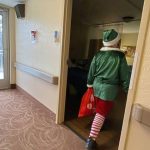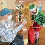 The Mountain View Elementary fifth grader donned an elf suit and hat for the visit with about 80 residents at the Sand Hill Road center. He purchased the stuffed animals with about $100 in saved allowance money and loaded them into a red sack for the trip.