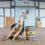 She’s been barrel racing for almost 10 years and breakaway roping for about three. Barrel racing is a timed event in which she and her horse navigate around barrels; breakaway roping involves roping calves.