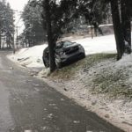 The vehicle had slid on ice and hit a utility pole, Guiddy said. A power line burned a couple feet short of the vehicle, but electricity was still conducting to the ground. Photographs from the scene show small burn marks near the top of the vehicle’s windshield.