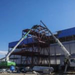 Work at the corner of Agnew Road and Route 30 began in July. Crews on Thursday installed the final steel beam for the hospital and adjoining cancer center.