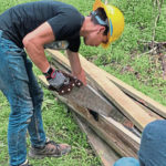 The Pennsylvania Outdoor Corps crew of eight, based in Greensburg, combined efforts to pry loose the existing, weathered bridge deck and replaced it with new, treated boards before breaking for lunch.