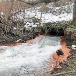 One of the worst of the acid mine discharges is along Tinker’s Run, which borders Irwin and North Huntingdon. The discharge turns Tinker’s Run orange where it meets Brush Creek, which flows into Turtle Creek in Trafford.