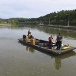 Working the past two weeks some 61 river miles from the confluence of the Monongahela and Allegheny rivers at The Point in Pittsburgh, the dive team hauls its considerable gear in a trailer and works off a flat-bottom dive boat.
