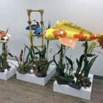 Briggs collaborated with You Are Here co-founder Jen Costello on an installation including two large papier mache koi, along with aquatic plants and birds incorporating various materials.