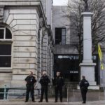 A bomb threat closed the Westmoreland County courthouse for nearly three hours Monday, the first day for new administration in the commissioner’s office and sheriff’s department.
