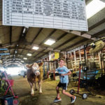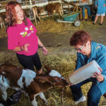 On Wednesday, Marian the calf did her part, biting and licking Parker’s clothing while waiting for a morning bottle. Parker has been working at the fair’s information booth for 33 years answering the phones and helping participants.