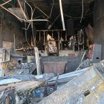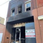The building housed Computer Clinic and an apartment on the second floor. The first floor was littered Monday with singed items and windows had been broken out of the upper level.