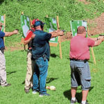 “Get that finger off that trigger! ” Smith barked at a trainee who wasn’t properly following his step-by-step instructions as a group prepared to shoot Saturday at Irwin Sportsmen’s Association.