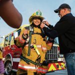 One student who get a little understanding of what it takes to wear a firefighter’s bunker gear was Ashlyn Brannagan of Mt. Pleasant.
