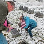 Nathaniel King and Alex Schwenger, both of Scottdale, and Gavin Rummel of Mt. Pleasant, all 11, walked through the cemeteries on a snowy day last month to find which markers — which have a hole to hold a U.S. flag — need to be replaced, said Ken King. King is Nathaniel’s father and den leader of Cub Scout Pack 160 of Everson.