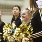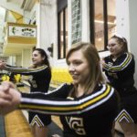 Kaylen Siko and her teammates know how to shake a leg — and an arm — to encourage players on the basketball court at Saint Vincent College’s Robert S. Carey Student Center.