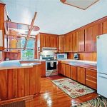 There is cherry hardwood flooring and paneling throughout with custom cherry cabinetry in the modern kitchen.