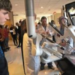 Students from Greater Latrobe and Ligonier Valley school districts joined other local residents Friday in trying out the controls of an improved surgical robot introduced during an open house at Excela Latrobe Hospital.