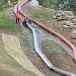 The new racing slides, and a small 50-foot slide for smaller children, were part of a two-year $1.1 million renovation project at 400-acre Mammoth Park and replaced a 96-foot slide that had been in use since the 1970s.