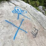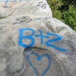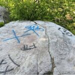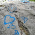 Volunteers on June 24 will be using Elephant Snot — a powerful graffiti remover that’s safe for the environment — to scrub spray paint from the rocks. Photos Mahony took show hearts, numbers, letters and what appears to be a spaceship spray painted on the rocks. But she refrained from posting the worst of the vandalism on the Forbes State Forest Facebook page.