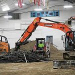 Parks and Recreation Superintendent Glenn Moyer reported this week that crews have completed demolition and removal of the rink’s concrete floor and insulation below it, as well as a 6-inch layer of piping and sand underneath.