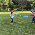 The city’s recreation program manager, Lydia Kinkaid, showed the children how to gently tag each other with pool noodles so they could maintain social distancing. Then the two teams raced off toward each other, each player trying to capture the opposing squad’s flag without being tagged and sent to “jail.”