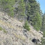 The decision proved fortunate when, during my descent, a mother grizzly bear and her three blond yearlings crossed the road. Rattled by my first-ever multi-grizzly sighting, I nervously slowed and stopped on the shoulderless pavement, thankful for no traffic either way. I then scrambled to grab a phone that had fallen to the car floor, plus an actual camera, before the family disappeared into forest.