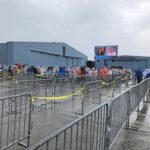 Drenched crowds stood in line at the Unity airport waiting to board buses to take them to a fenced-in holding area in front of the L.J. Associates hangar, where some would wait for about seven hours before the scheduled start of the rally inside the hangar. By early afternoon, it appeared there were easily more than 1,000 Trump supporters inside the holdings pens, with the only entertainment Trump-leaning political news broadcast on an oversized screen.