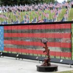 The 28-foot-long memorial is in the shape of a flag, created from individual dog tags that each represent one of the more than 7,000 U.S. troops who have been lost in the global war on terror.