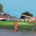 Responding firefighters said the fire quickly spread from the kitchen to the second floor and into the attic. The couple’s daughter Lilly, 9, and two other sons, John, 16, and Sam, 14, fled the home after being alerted to the blaze.