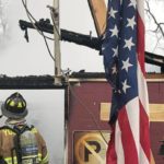 There was some heat damage to a United States flag hanging from a nearby tree.