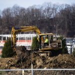 Crews have been working through the winter at the former site of the Jeannette Glass factory as the testing facility along Bullitt Avenue begins to take shape. Some landscaping was added this week to serve as a buffer between the site and nearby homes.