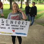 “I think family and friends should be there to see us walk across the stage during graduation. We worked hard for this,” said Kyle Silk, a senior from Ligonier, as he stood outside the administration building holding a sign protesting the graduation.