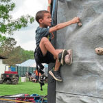 Jacob Swank, 6, of Mt. Pleasant Borough, worked up the courage to try the climbing wall with some encouragement from his mom, Katie Majercak, who has been bringing him since he was a year old.