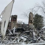 Hecla Assistant Fire Chief Michael Meloy said the structure, which hearkened back to the town’s coal mining days, collapsed. Only a couple sections of the exterior still stood Saturday, with the rest reduced to rubble.