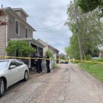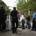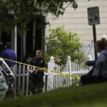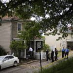 Police used yellow crime scene tape to block off the home as authorities worked inside and interviewed neighbors. An officer removed a small dog from the home.