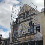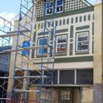 With many of the original wooden facade accents missing or incomplete, carpenter Jason Gunther of Derry, who operates Gunther Services, has used remaining impressions they left behind as guides in reconstructing the detailing.