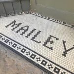 A stamped tin ceiling over the former kitchen and a tile floor accent that extends out to the front stoop are among details remaining from Mailey’s Bakery.