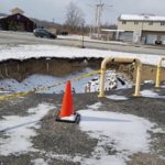 The collapsed pipe and sinkhole are on separate properties — one owned by a Belle Vernon man and the other owned by a local company — near the Interstate 70 and Route 51 interchange.