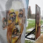 Watercolor paintings, emotion-filled photographs, bold quotations and more line the sidewalk outside Chambers Hall at Pitt-Greensburg.