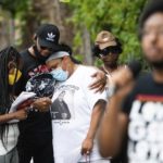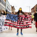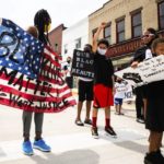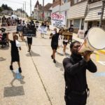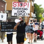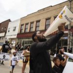 The group started with a prayer and then took to the city’s downtown area led by police officers. They yelled chants such as “My skin is not a crime” and “Stop killing us.”