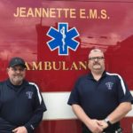 Jeannette EMS paramedic Del Black and Gregg Shearer, an emergency medical technician, were at the Strip District museum Oct. 3 to teach a CPR class for employees when a security guard got a call: someone collapsed downstairs.