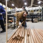“I feel like Willy Wonka in the chocolate factory,” sawmill manager Patrick Cannin said as he showed off stacks of thousands of dowels piled high behind him. They will be used to make handles for sledgehammers, shovels and other tools.