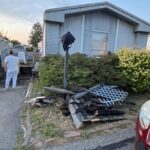 Three adults and three children escaped unharmed after fire broke out on the porch of their mobile home Friday night in East Huntingdon.