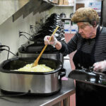 Volunteers prepare coleslaw in the morning before cooking fish nonstop from 2 to 6 p.m. — unless the food supply is exhausted. Others direct the traffic coming into the church from Clay Pike and Guffey Road, guiding community members to areas where their orders are taken.