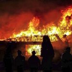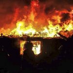The blaze was reported at 8 p.m. Firefighters were met with flames shooting through the roof, and the fire was too intense for them to get inside. Two firefighters were hospitalized for heat-related injuries.