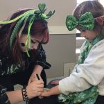 Meadow Golick, 7, stopped at the Holy Trinity Lutheran Church Hall to get a shamrock and other Irish-related images painted on her hands after she spied and collected a larger shamrock along Main Street, part of the event’s scavenger hunt.