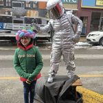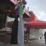 Downtown visitors strolling past Gift Basket World were greeted by a stilt-walker, who kept his balance amid occasional wind gusts, and a space suit-clad “living statue,” both portrayed by entertainers from Akron, Ohio. Balloon sculptures also were available.