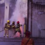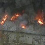 Firefighters were pouring water on several propane trucks around the garage to keep them from exploding. The garage roof reportedly collapsed by 5:30 p.m.